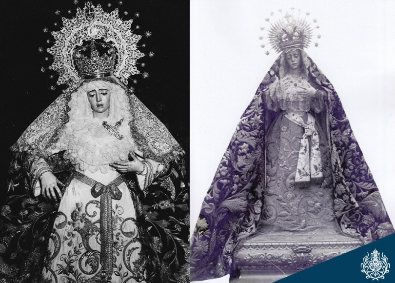La pieza primitiva fue adquirida en el mismo lote del palio y manto decimonónicos de Juan Manuel Rodríguez Ojeda, acompañando a la imagen desde principios de siglo.