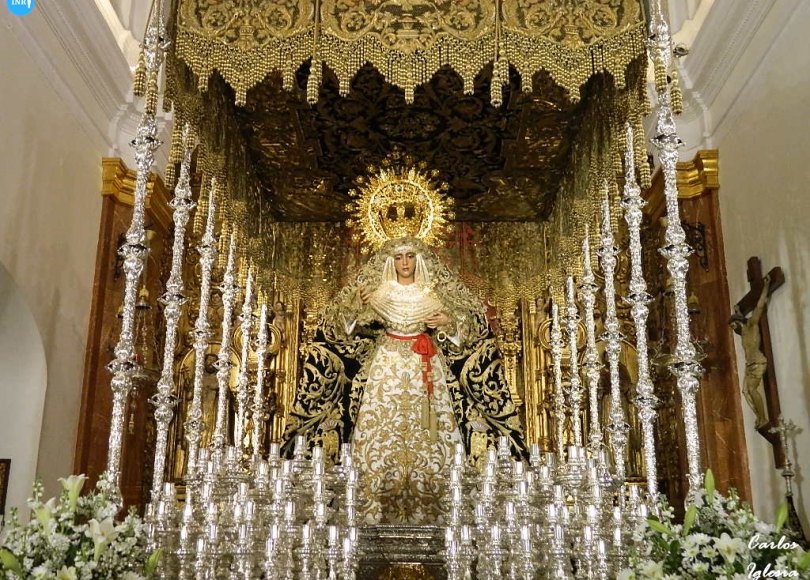 La espera se acorta en el barrio de Triana. La Virgen de la Esperanza ya se encuentra desde este jueves 23 de marzo en su paso de cara a la Semana Santa.