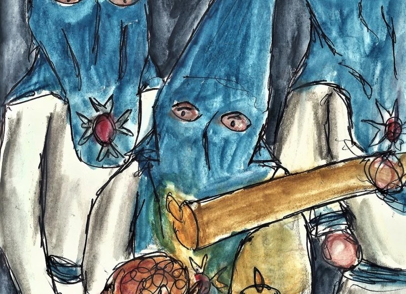 Toda esta introducción es para contar que sin ser miembro de ninguna hermandad siento especial unión con La Misión que sale del Claret y recorre Heliópolis, Reina Mercedes y llega hasta el Hospital Universitario Virgen del Rocío. Todos los años es la primera que veo salir y por tanto la primera que dibujo.