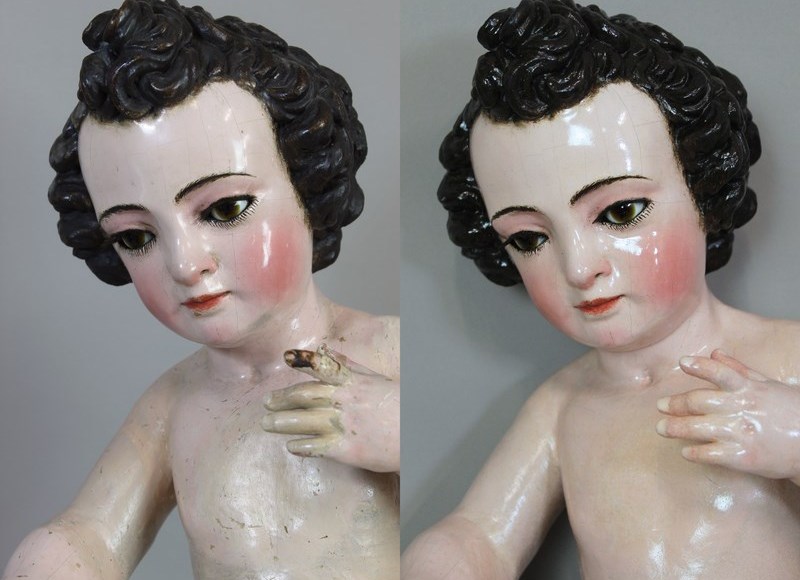 La restauración de la Imagen ha permitido eliminar toda la suciedad superficial, así como las diferentes capas de repintes y empastes no originales de la parte del cuerpo que siempre se encuentra cubierta, y que sin embargo eran las zonas más dañadas y con presencia de grietas de mayor importancia. Además, gracias a la intervención se han podido rescatar algunos volúmenes perdidos que se encontraban recubiertos de excesos de emplastes de intervenciones anteriores.