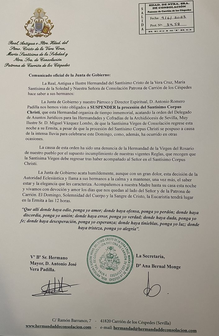 Comunicado Consolación Carrión de los Céspedes