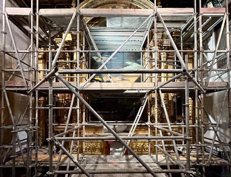La Hermandad del Museo está albergando las labores de restauración de su retablo mayor, gracias a las ayudas y la subvención por parte de la Junta de Andalucía.