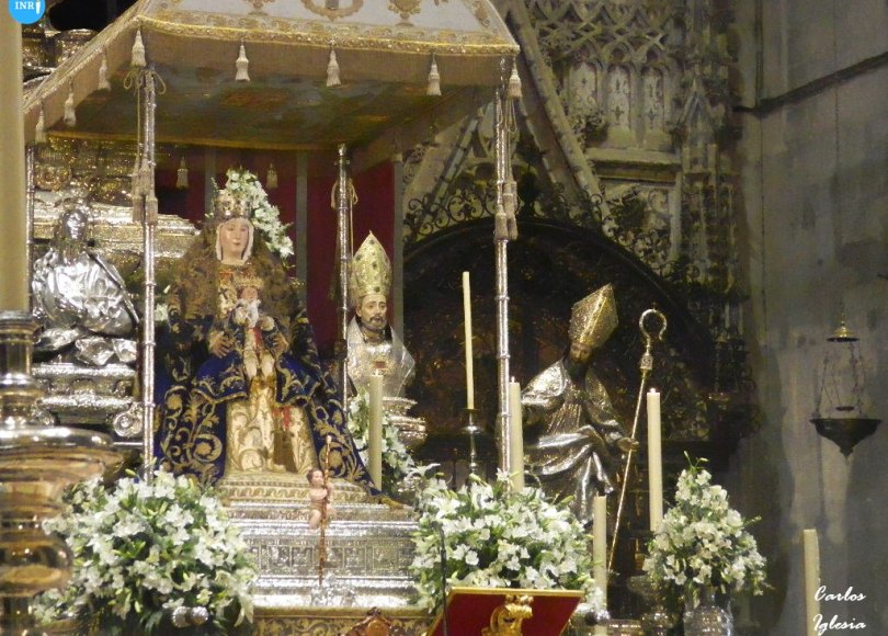 Tras su primer besamanos de este mes de agosto, la Virgen de los Reyes ha sido llevada a los pies del altar del jubileo de la catedral para la celebración de su novena.