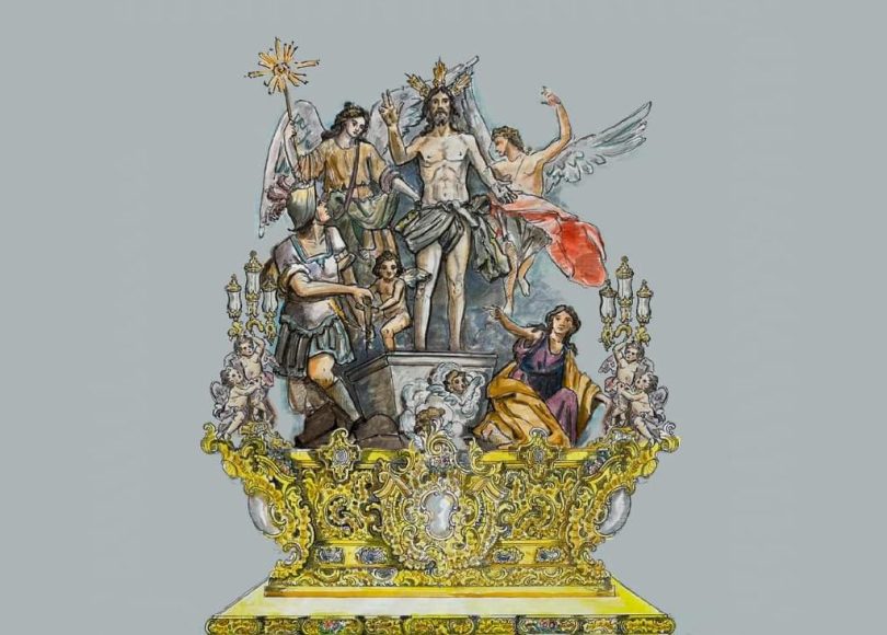 El tallista Alexis Sánchez ha diseñado unas andas de estilo churrigueresco y que hacen la función de peana (cáliz) para albergar la escena de la Sagrada Resurrección.