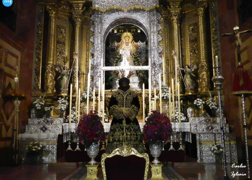 El Cristo de la Exaltación fue dispuesto en el presbiterio del altar mayor para presidir la función de la Exaltación de la Santa Cruz el jueves 14 de septiembre, mientras que la Virgen de las Lágrimas esperaba en su capilla.