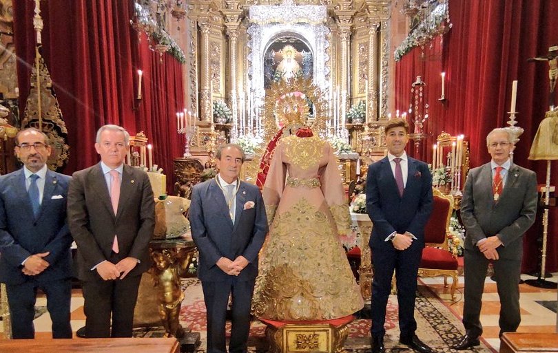 La Hermandad de la Macarena ha presentado durante su besamanos, la saya de tisú rosa de la Virgen del Rosario tras su restauración en el taller de José Antonio Grande de León. Esta pieza, obra del reconocido taller de José Guillermo Carrasquilla, es una de las mejores sayas que posee la titular letífica destacando la riqueza de los bordados y las técnicas utilizadas, entre ellas las hojillas y cartulinas.