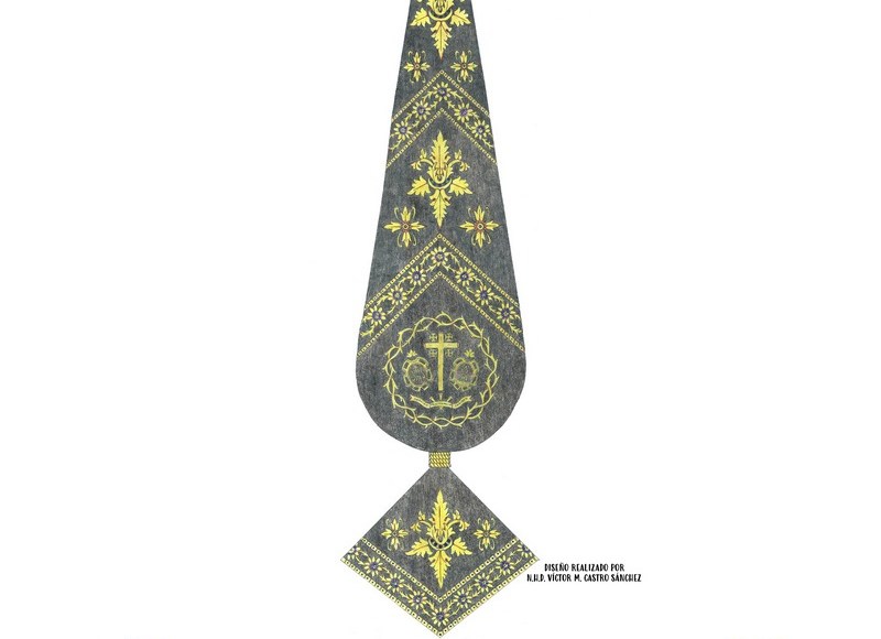 El nuevo estandarte será realizado en terciopelo negro bordado con hilo de oro, plata y seda siguiendo las técnicas tradicionales de la escuela sevillana, con un diseño de estilo neobarroco que presenta una composición totalmente simétrica, situándose en la parte central el escudo de la corporación, dejándolo libre de ornamentación para que así destaque.