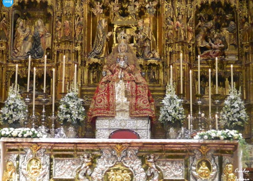 Para la ocasión, la Virgen de los Reyes se dispuso a los pies del altar mayor de la catedral. Llevó para la ocasión su manto rojo