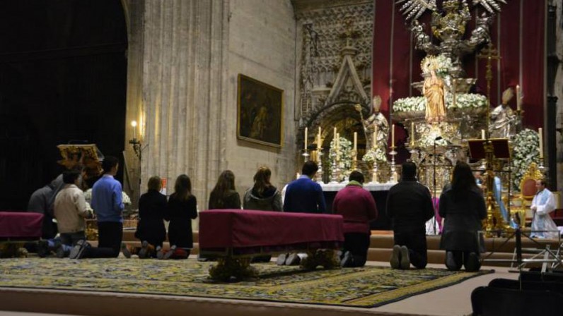 Como viene siendo tradicional, cada 7 de diciembre se celebra en la catedral hispalense la Vigilia de la Inmaculada, organizada por la Pastoral Juvenil de la archidiócesis.