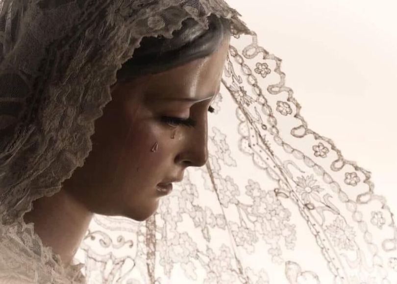 La recreación de la fotografía de la Virgen de las Angustias con mantilla