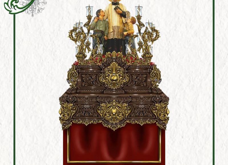 La imagen de San Juan Bosco de María Auxiliadora de Triana tendrá un nuevo paso procesional. El diseño ha sido realizado por José Antonio García Flores, que será también el encargado de ejecutar la ebanistería y talla ornamental del proyecto.