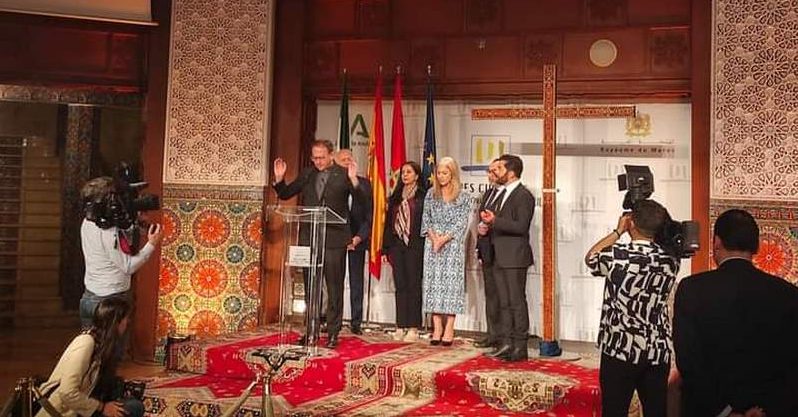 El acto de entrega tuvo lugar el pasado lunes 8 de abril, donde estuvo presente el alcalde de esta ciudad Tarik Ottmani, además de la propia hermandad encabezada por su hermano mayor Víctor Padilla, la consejera de Desarrollo Educativo y Formación Profesional de la Junta de Andalucía, Patricia del Pozo, y el consejero del Rey de Marruecos y presidente de la Fundación Tres Culturas, André Azoulay.