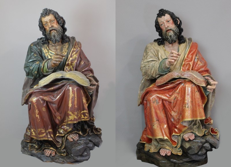 La restauración de la obra ha permitido eliminar toda la suciedad acumulada y la retirada de sucesivos estratos de repolicromías en las zonas de los ropajes, revelando fragmentos de ricas ornamentaciones realizadas al estofado. Asimismo, se han saneado las múltiples grietas y aberturas del soporte, extrayendo además un importante número de clavos oxidados originales, que por razones del mal estado en el que se encontraban los mismos y el soporte, no pudieron ser repuestos para poder mantener una correcta estabilidad estructural.