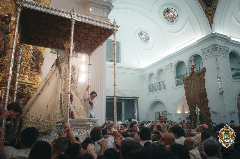 En estos momentos se encuentra de regreso al santuario, tras haber saludado a la inmensa de las hermandades. Destacan su discurrir por Pilas, Triana y a Gines, en momentos para el recuerdo de todos los rocieros.