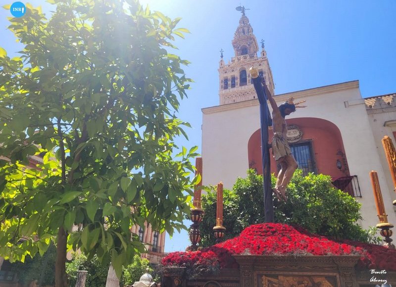 El calor empezó a hacer mella cuando en torno a las 12.00 horas se procedió al regreso del Cristo de Burgos. Lo hacía con los sones de la Banda de Música del Maestro Tejera, dejando una imagen que quedará en la retina de los presentes. Bajo el repique de campanas de la Giralda salió la imagen de Juan Bautista ‘El Viejo’, donde se interpretó ‘Miradlo en la Cruz’, la marcha conmemorativa realizada por David Hurtado.