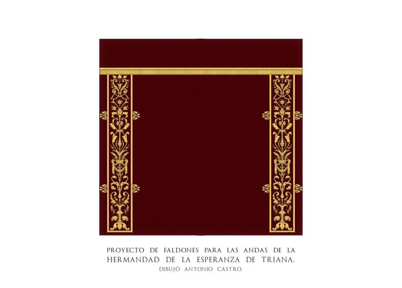 En este sentido, proyecta realizar unos nuevos faldones para las andas de traslado de sus titulares. El diseño ha correspondido a Antonio Castro y será ejecutado por el taller de los bordados Santa Clara, en la persona de José Luis Sánchez Expósito.