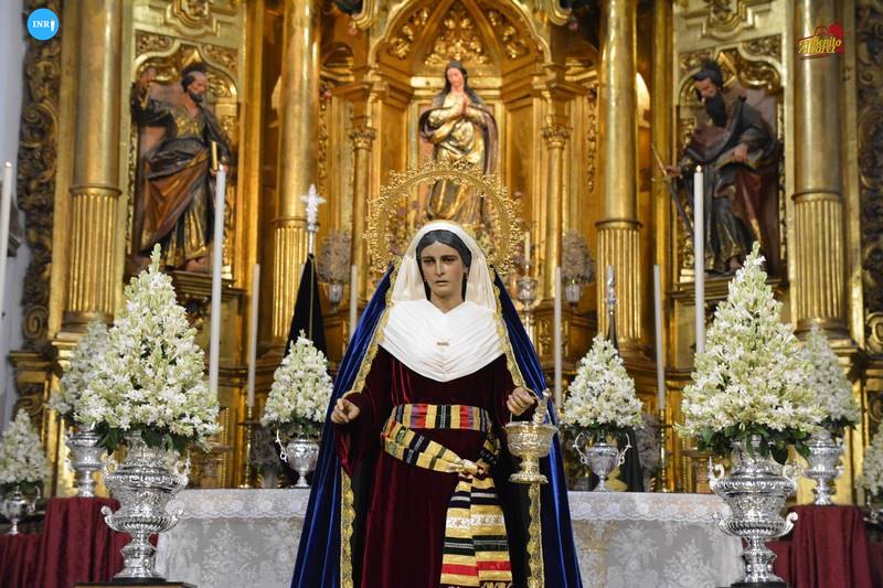 La imagen de la corporación del Lunes Santo estuvo expuesta en el presbiterio del altar mayor de este templo. Vestía para la ocasión manto liso de terciopelo azul y saya a juego del mismo tejido, junto con un fajín hebraico y tocado blanco. Además llevaba su tradicional hisopo y acetre y su correspondiente aureola.