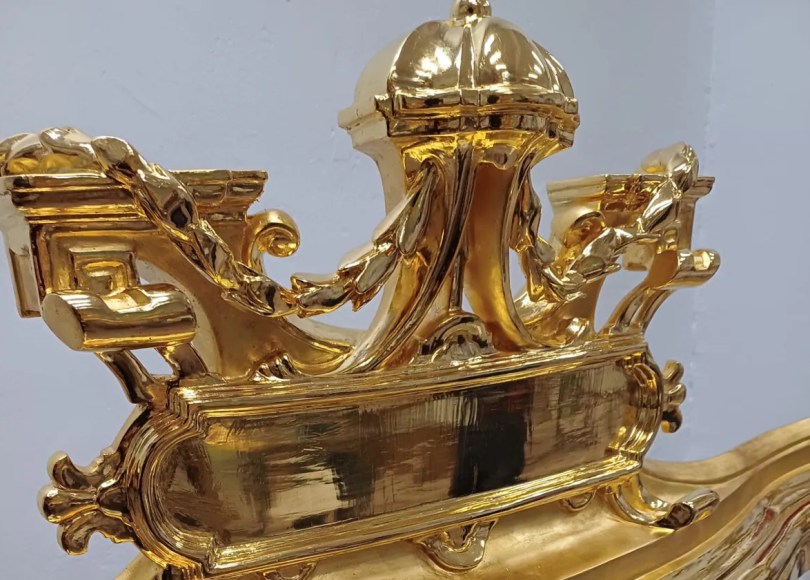 Estos trabajos, que se están centrando en la crestería y los candelabros, está avanzando a buen ritmo, y se espera su conclusión de cara a la próxima salida procesional del mes de noviembre. Estas tareas están siendo encomendadas por Enrique Castellanos.