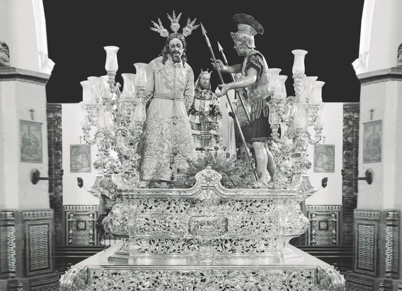 El Señor del Silencio en el Desprecio de Herodes, en el templo de San Juan de la Palma, sobre su impresionante paso procesional nos sirve de pórtico para este libro que pretende ser homenaje y muestra de admiración a Manuel Albarrán, el fotógrafo de las cofradías de Sevilla.