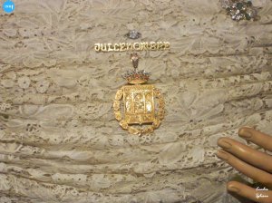 La imagen estuvo en una de las zonas laterales con manto azul y saya a juego bordada blanca con fajín rojo, además de corona y toca de sobremanto. Estuvo dispuesta bajo su palio para la ocasión.