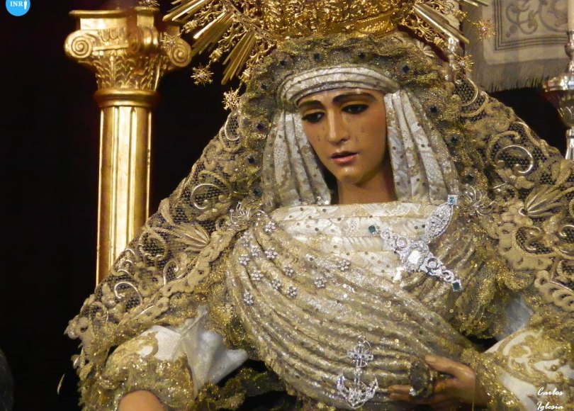 Para este culto interno, la imagen lleva el manto de salida conocido como el ‘de los dragones’ de los Sobrinos de José Caro del año 1948 y la saya de Olmo, diseñada por José Recio en 1918.