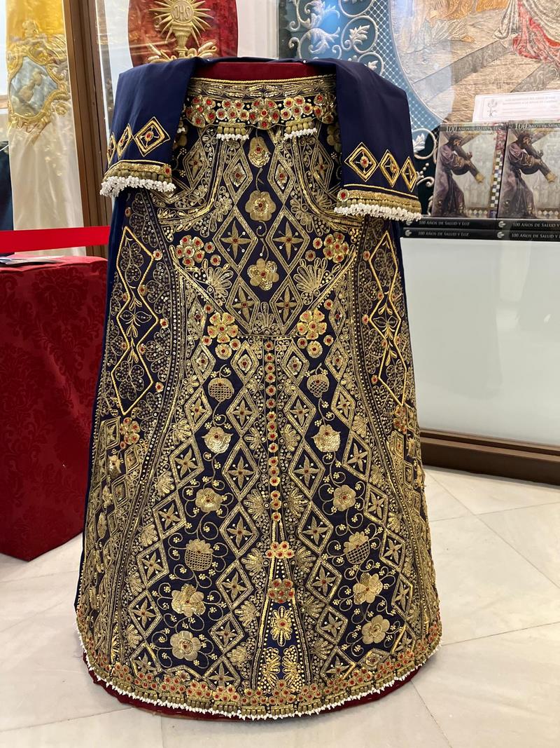 En este caso se trata de una saya para la Virgen de la Candelaria. Se trata de una donación de un grupo de hermanos, propietarios del Bar Candelaria.