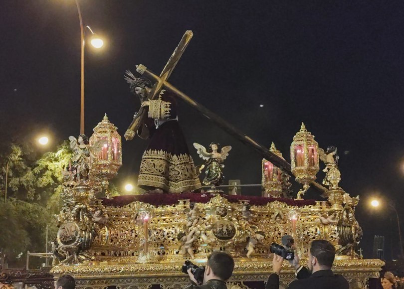 Tras salir del recorrido oficial se encaminó por Reyes Católicos y San Pablo, hasta llegar a la plaza de la Magdalena y a O’Donnell. A un buen ritmo, avanzó por el camino más directo, para llegar por la Campana, al Duque y Jesús del Gran Poder. Hizo su entrada en torno a las 22.00 horas, dejando así una jornada para la historia para todos los cofrades y devotos en torno al Señor.