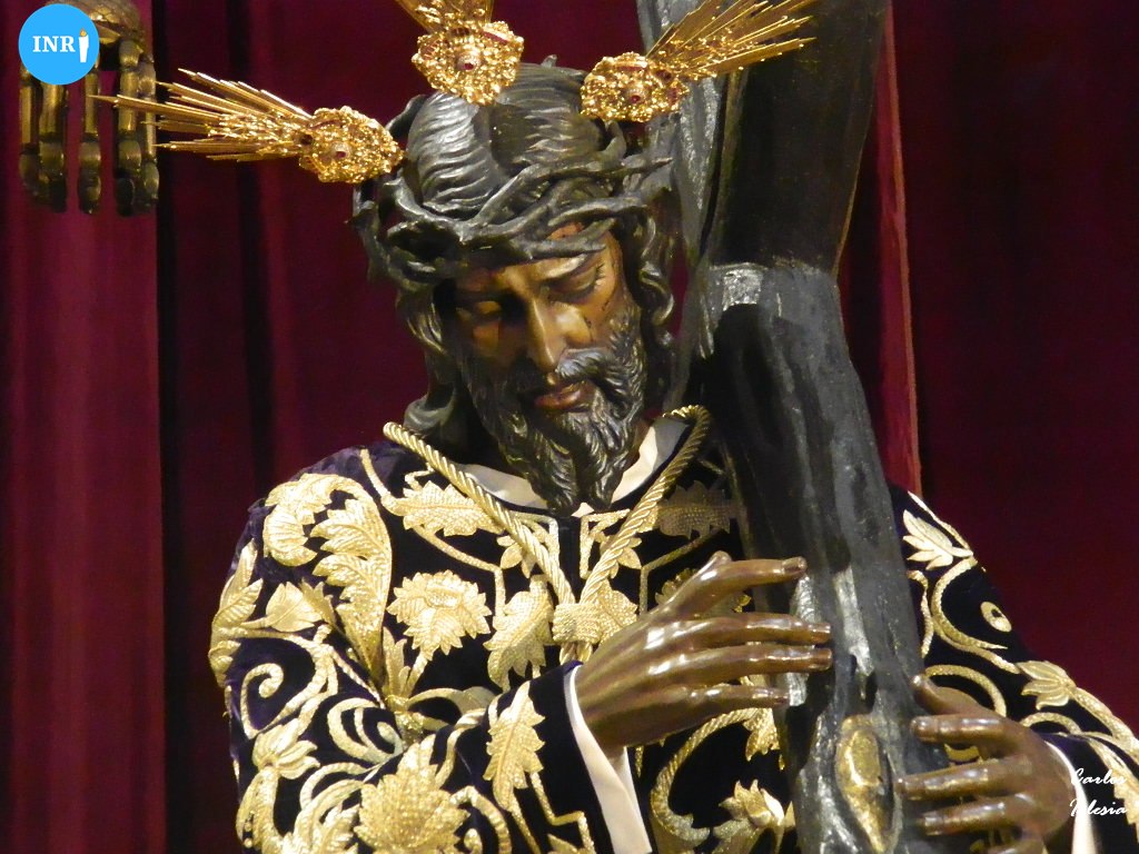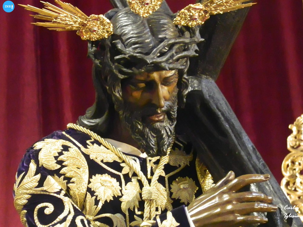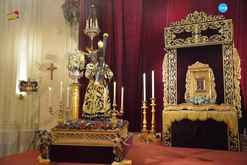 La imagen se encontró en el presbiterio del altar mayor con su manto de salida y saya de terciopelo roja bordada. La imagen estuvo bajo su palio y con jarras de flores de tonalidad rosa, recreando una estampa del Domingo de Ramos.