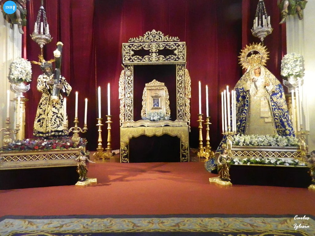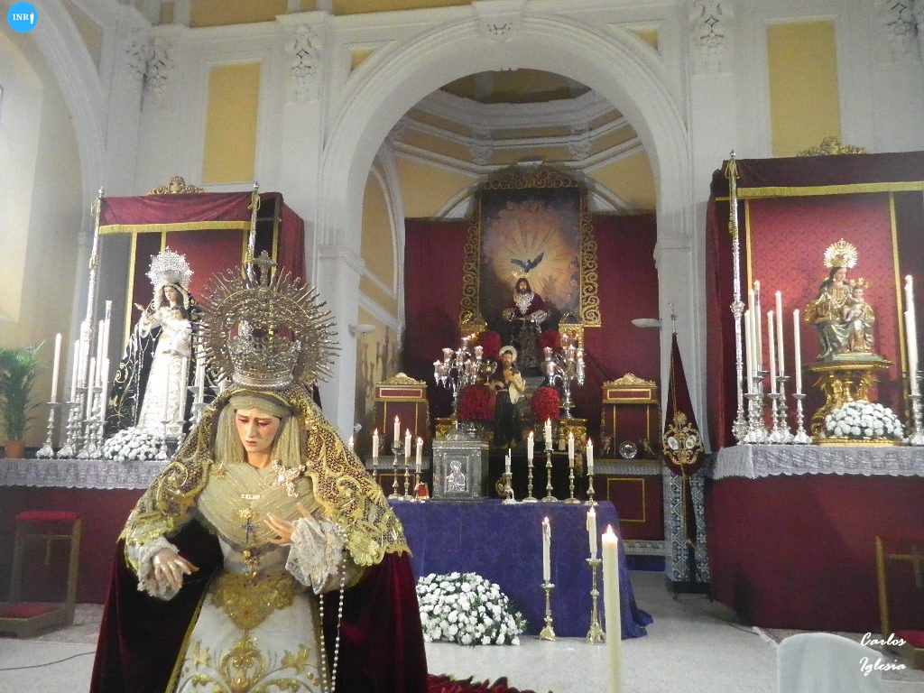 En el altar mayor, la Virgen de la Hiniesta Gloriosa estuvo en su templete y con varias tandas de candelería en el altar mayor. En el caso del Cristo de la Buena Muerte y la Virgen de la Hiniesta Dolorosa recrearon una estampa de tiempos pretéritos. A modo de ‘Stabat Mater, la dolorosa lució aureola de estrellas, y manto azul y saya blanca.
