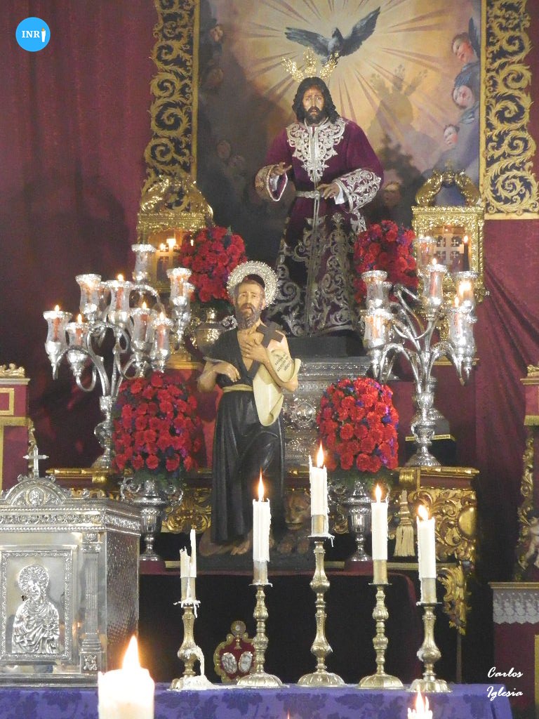 El altar mayor lo presidió la imagen de San Jerónimo y el Señor del Amor en su Divina Misericordia, que portó la túnica malva y plata del Señor de la Sentencia, cedida por la Hermandad de la Macarena.