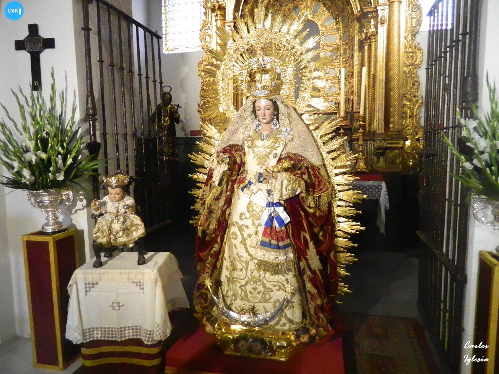 En la zona central se encontraba la Virgen de la Salud en besamanos, con manto burdeos y saya blanca para la ocasión. Tras la imagen dos altares laterales, presidido por la Virgen del Rosario y por la Virgen de Belén, ambas bajo dosel.