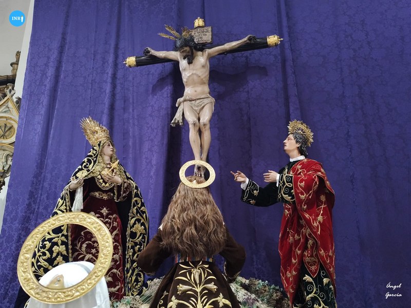 En San Vicente se recreó el misterio del Calvario, con el Cristo de las Siete Palabras, la Virgen de los Remedios, San Juan Evangelista, y las tres Marías para la ocasión.
