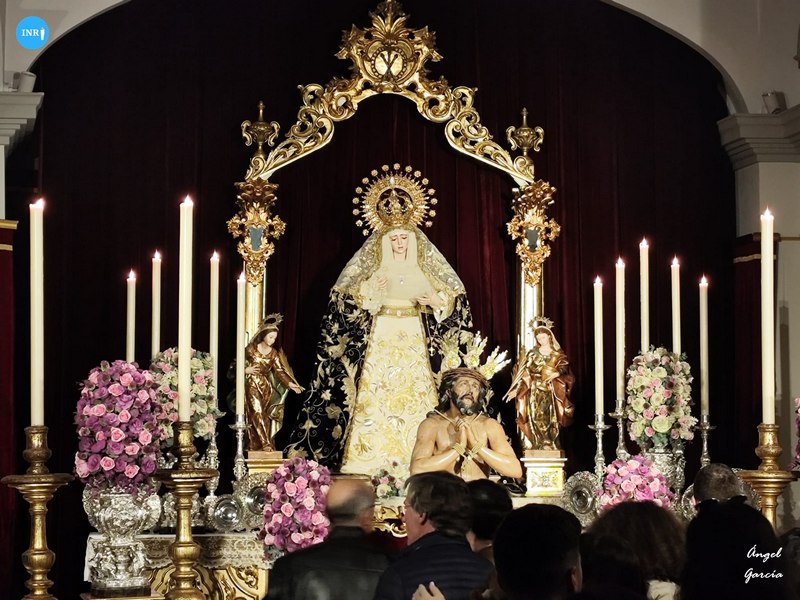 Como si fuera el mes de septiembre, la Virgen de los Dolores y Misericordia estuvo en besamanos, con su habitual manto azul y saya blanca. Tras la imagen se situó Jesús Despojado con su túnica blanca y el altar presiiddo por una cruz.