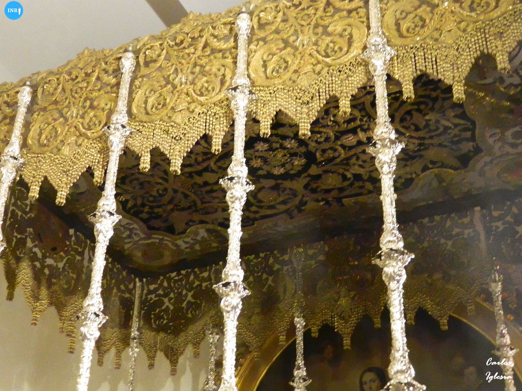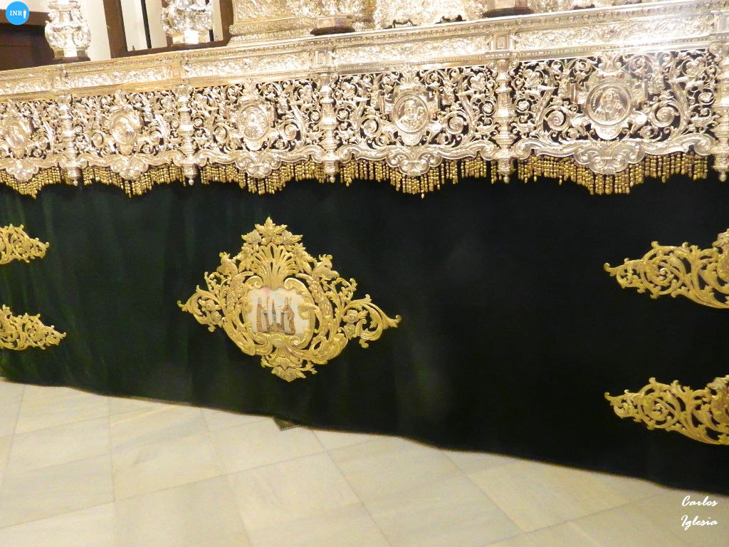 Mientras la Virgen de la Esperanza de Triana se encuentra en la parroquia de Santa Ana con la celebración de su septenario, su paso de palio ya se encuentra en una de las naves laterales, a la espera de la subida de la imagen cuando regrese.