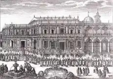 14 julio, 2024 Grabado realizado por Pedro Tortorello en 1738 que muestra la Casa Consistorial hispalense desde la Plaza San Francisco Publicado por INRI
