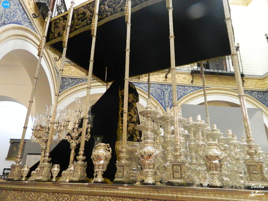 Finalmente, en el patio de entrada del Círculo Mercantil se alzó el paso de palio con los nuevos respiraderos en plata estrenados la pasada Semana Santa y realizados por Orfebrería Villarreal.