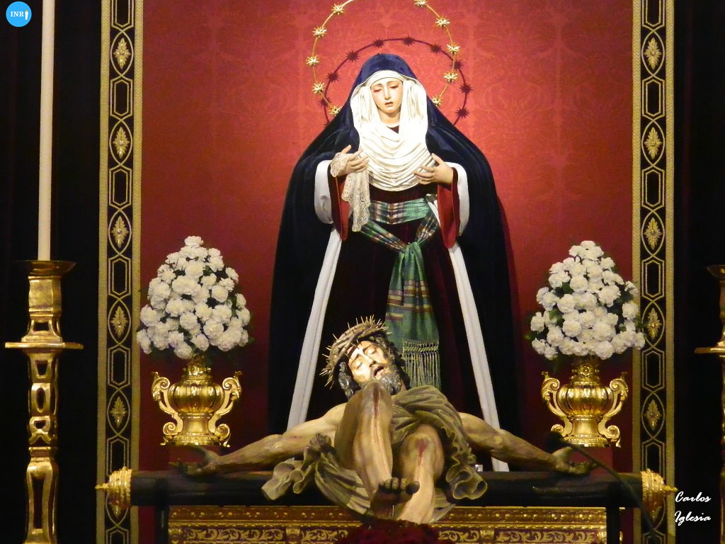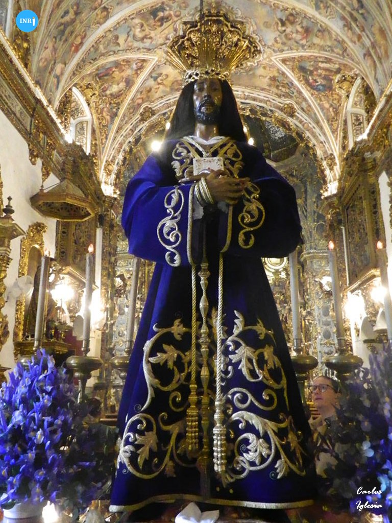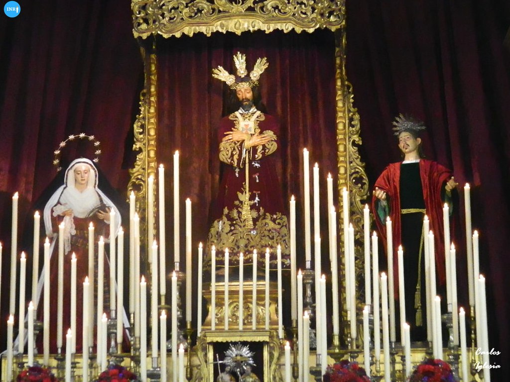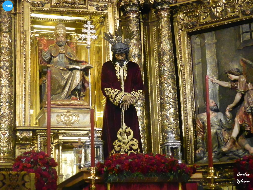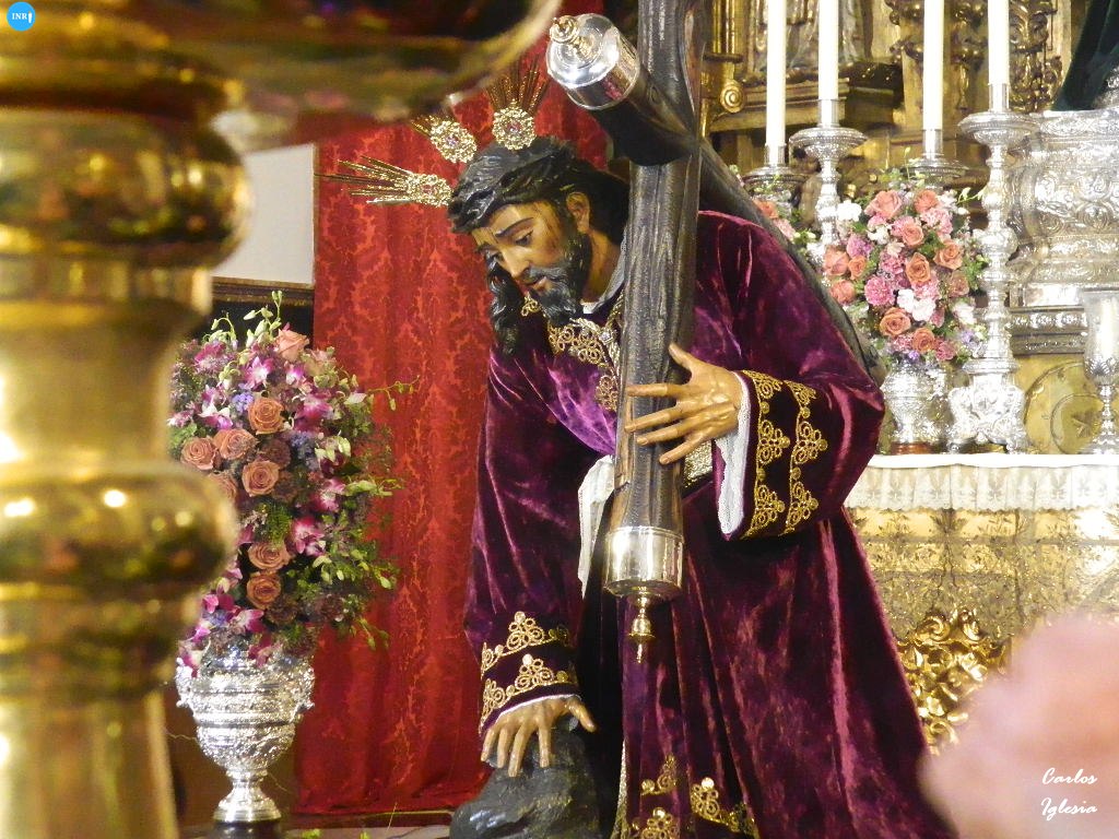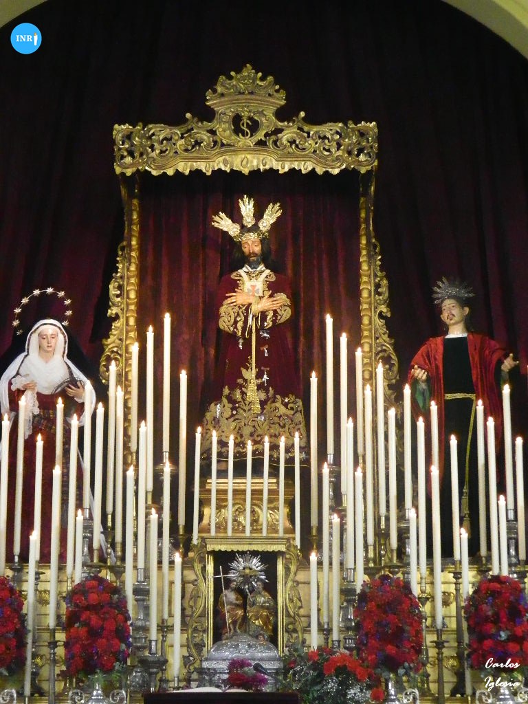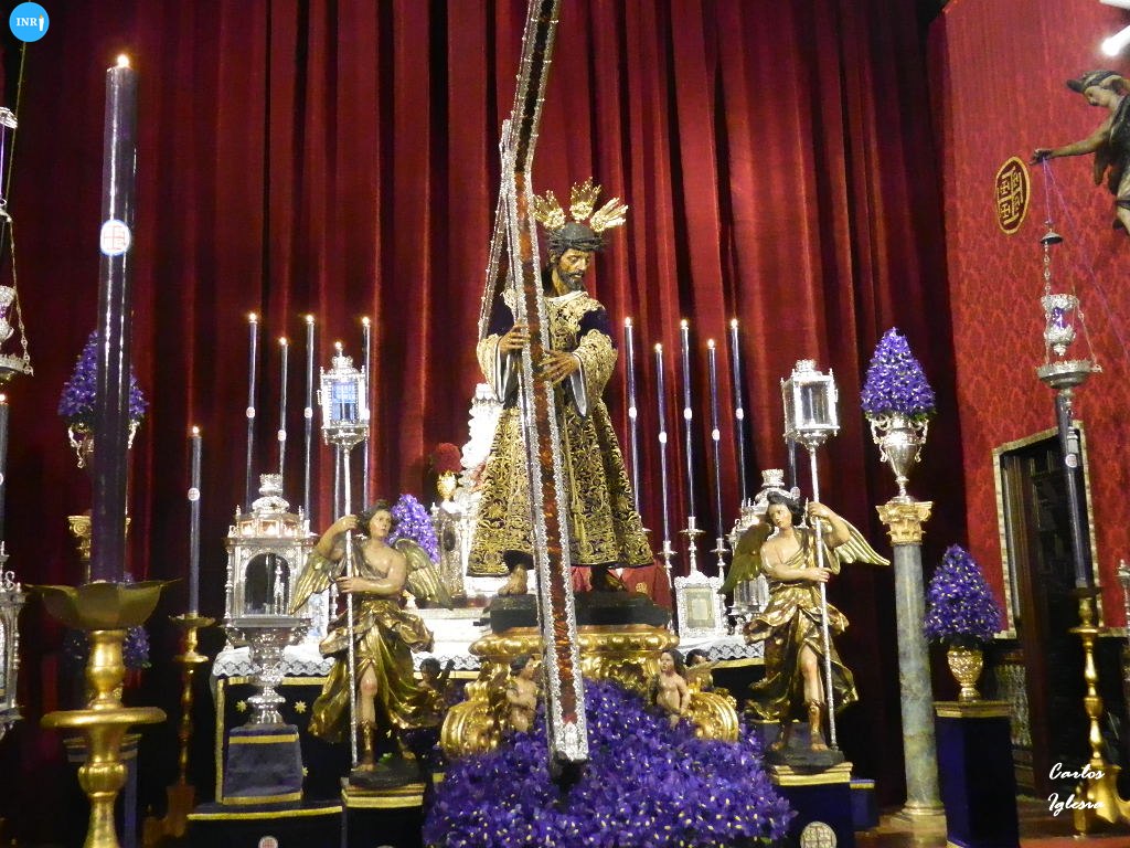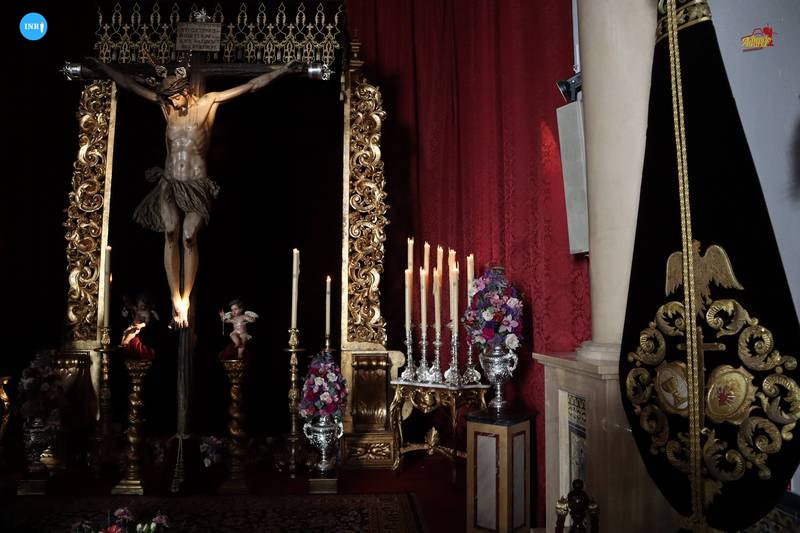 Sobre unas andas se situó el Nazareno de la Salud de la Hermandad de la Sacramental de San Pedro para la celeberación de los cultos en su honor.