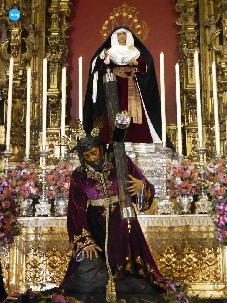 En su capilla de los Marineros, y tras la celebración de sus cultos en la real parroquia de Santa Ana amanecía el Cristo de las Tres Caídas a los pies de la Esperanza de Triana, vestida de hebrea para este tiempo cuaresmal.