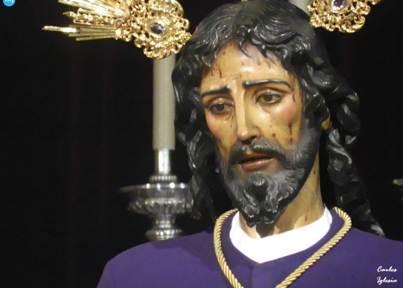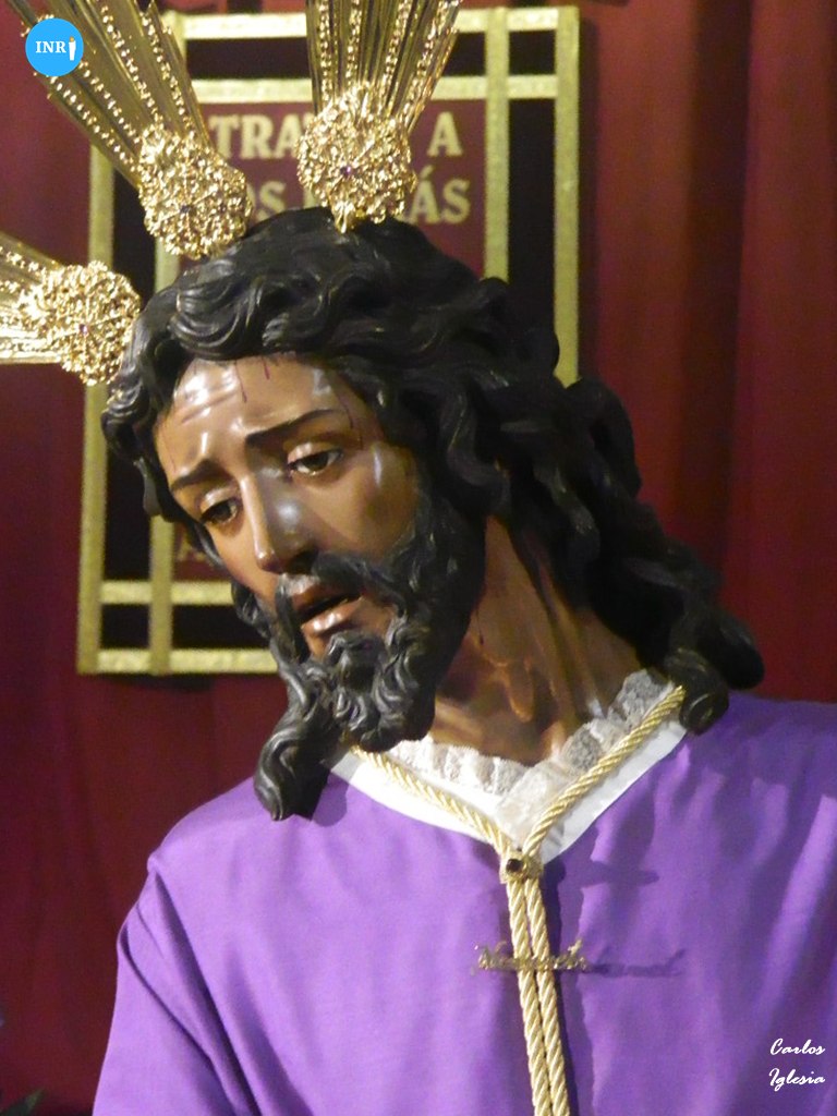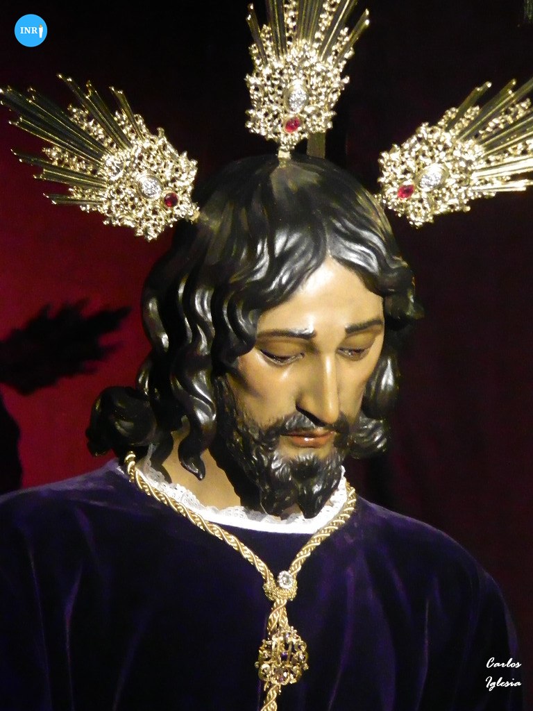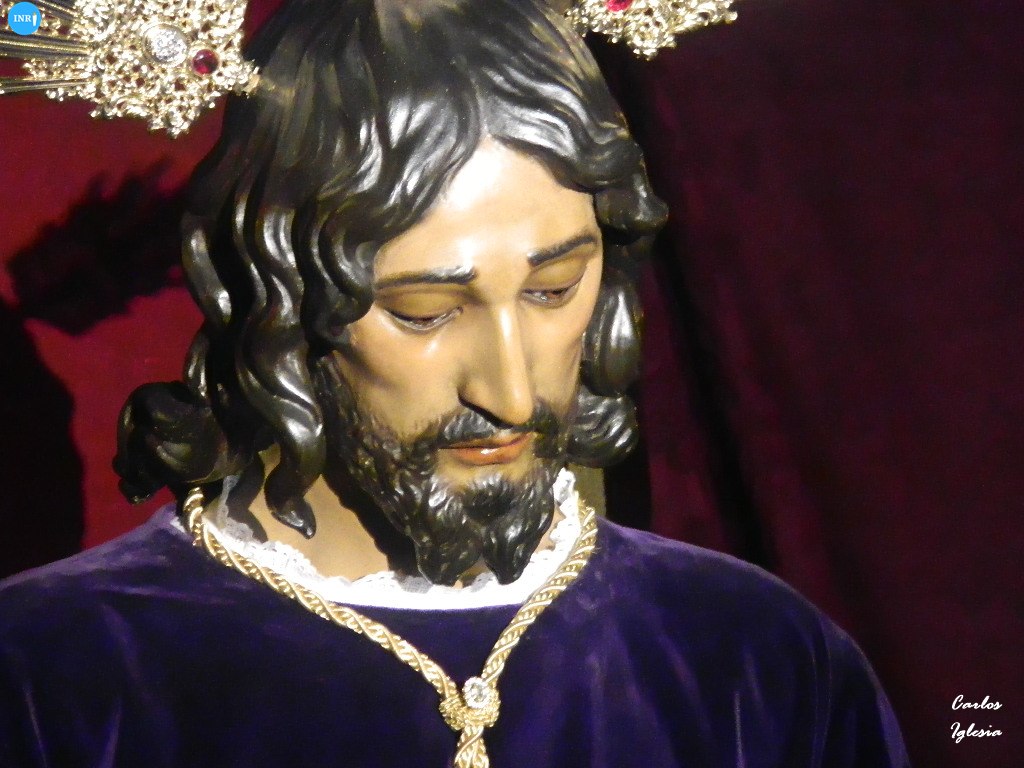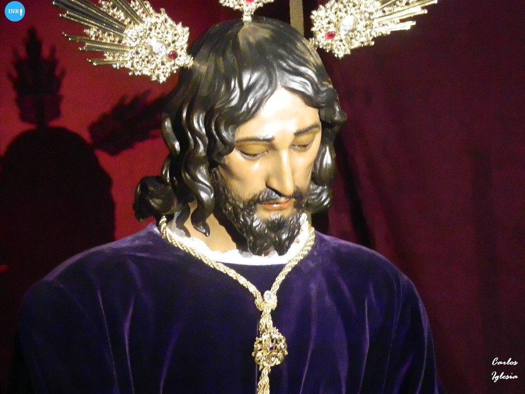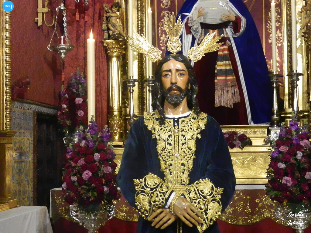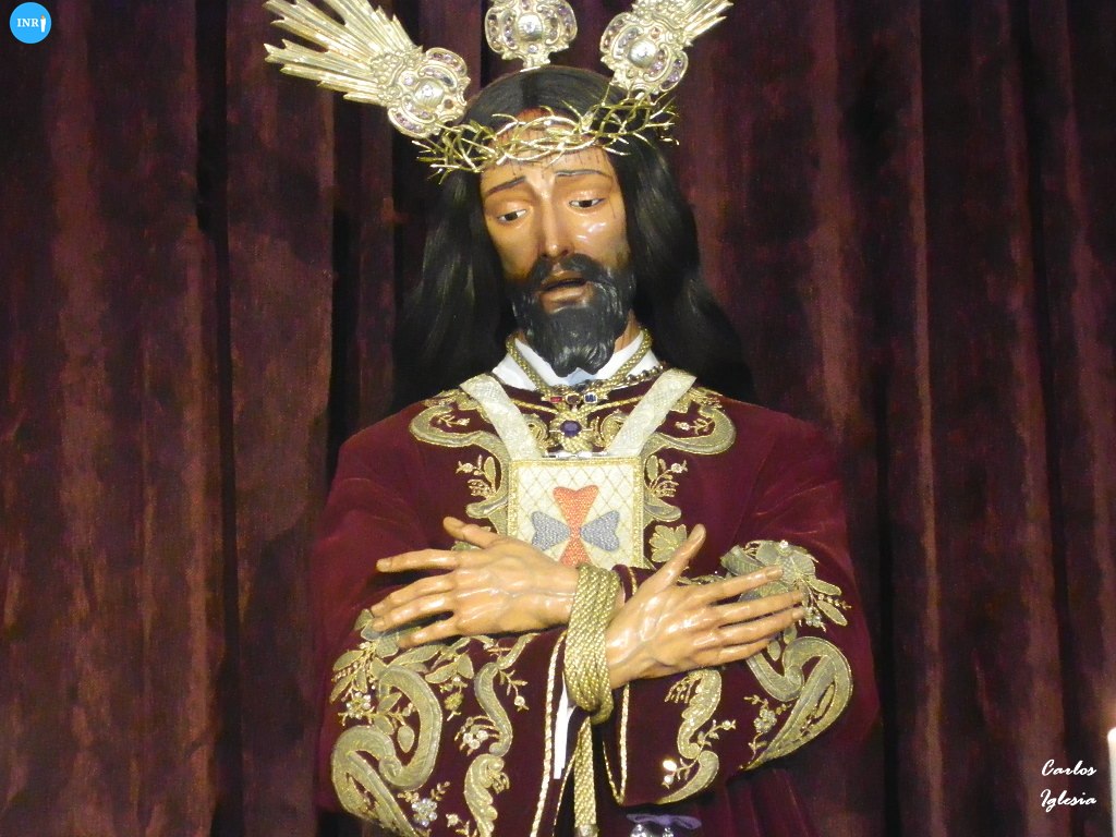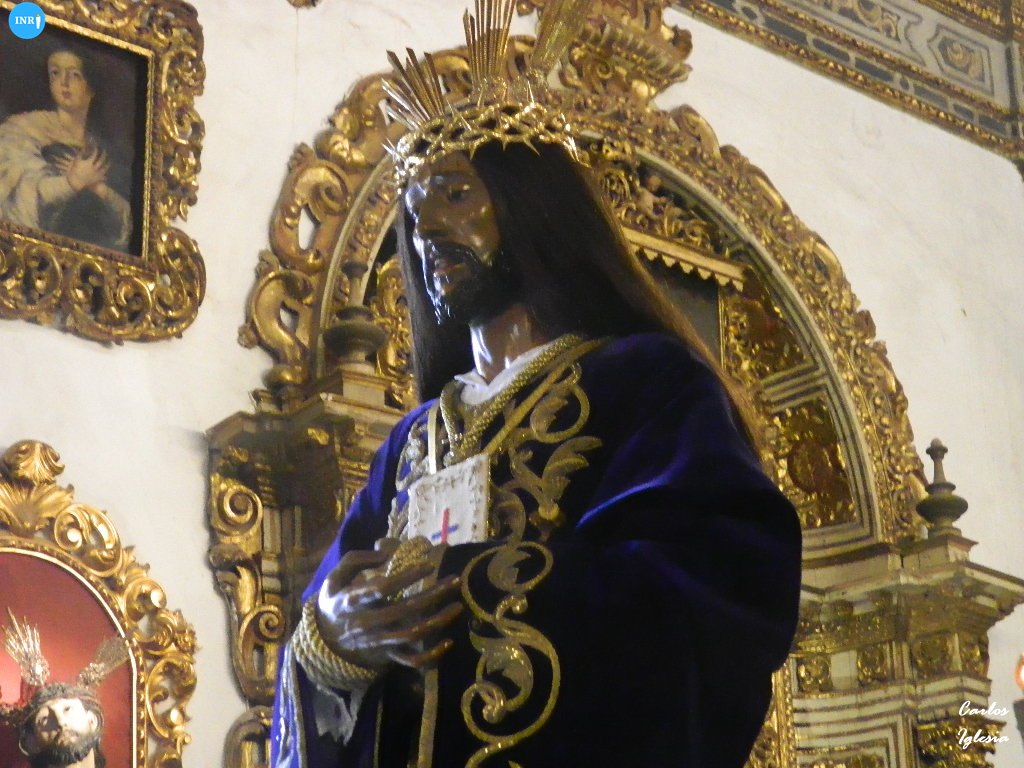 La imagen de Jesús Cautivo de Medinaceli, de la Casa de Pilatos, también estuvo en veneración este pasado viernes día 7, bajo un templete de colores celeste y dorado.