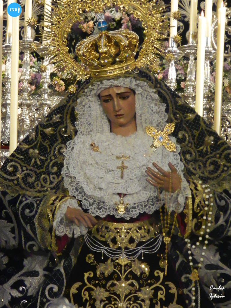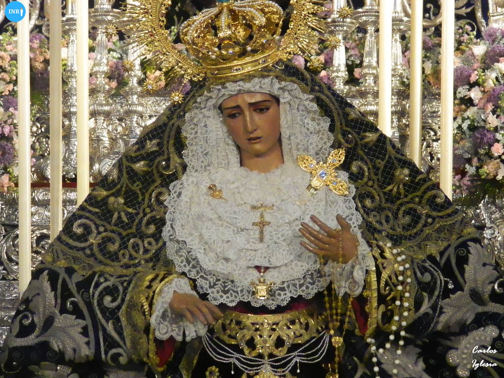 Ya en la basílica del Gran Poder estuvo en besamanos la Virgen del Mayor Dolor y Traspaso. Lució el manto de Garduño y saya blanca para la ocasión.