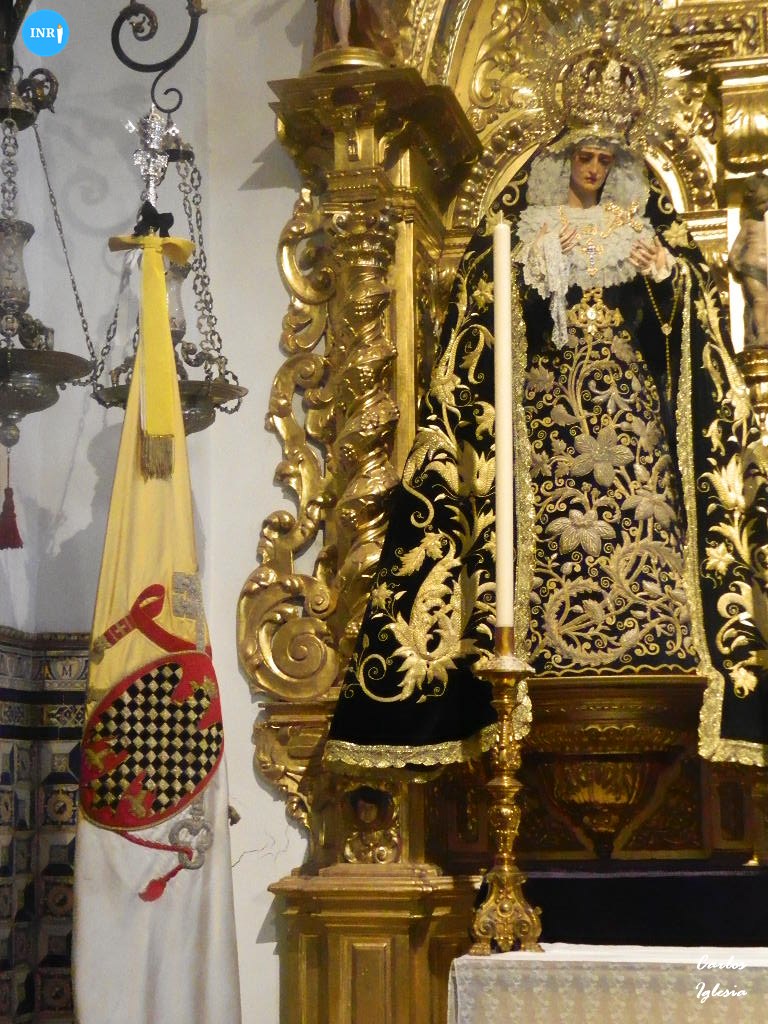 Muchas hermandades han portado en estos días un crespón negro en sus altares o su insignia de la bandera pontificia. Incluso, en el caso de la Hermandad de la Exaltación ha vestido a su dolorosa de luto por esta triste pérdida.