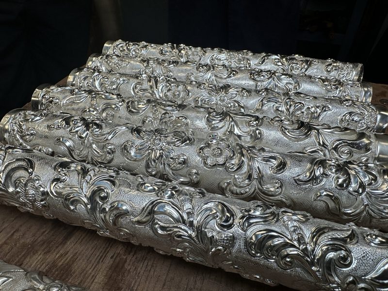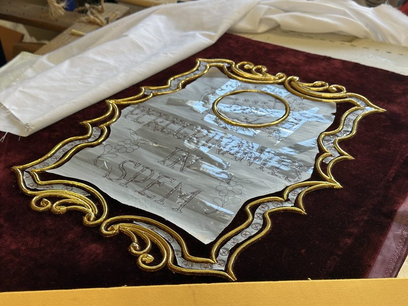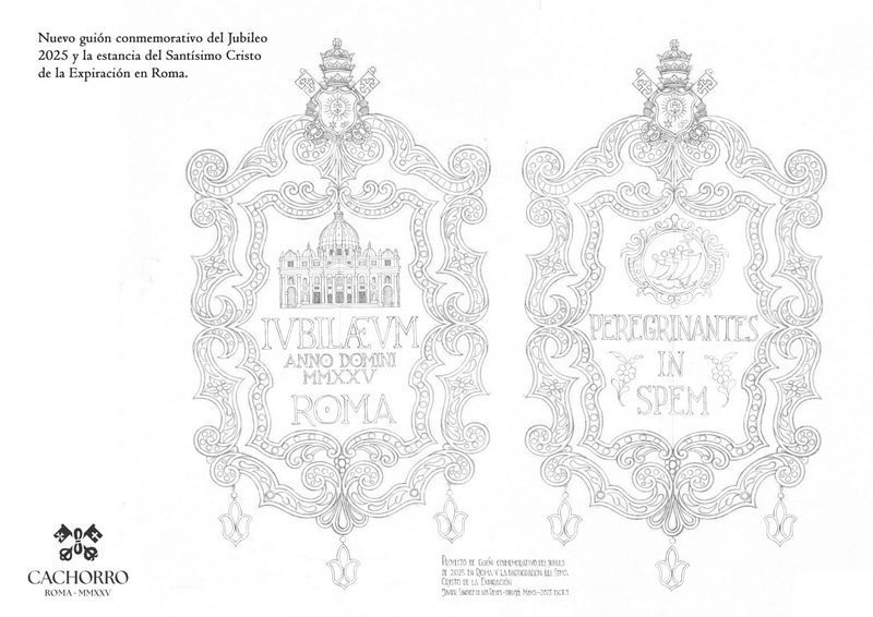 Se trata de un diseño de Javier Sánchez de los Reyes y que está siendo realizado por el taller de Santa Clara en el bordado y Jesús Domínguez en la orfebrería. Se espera que su estreno, al igual que las varas de acompañaniento, sea el próximo 17 de mayo durante la ‘Gran Procesión’ por las calles de Roma.