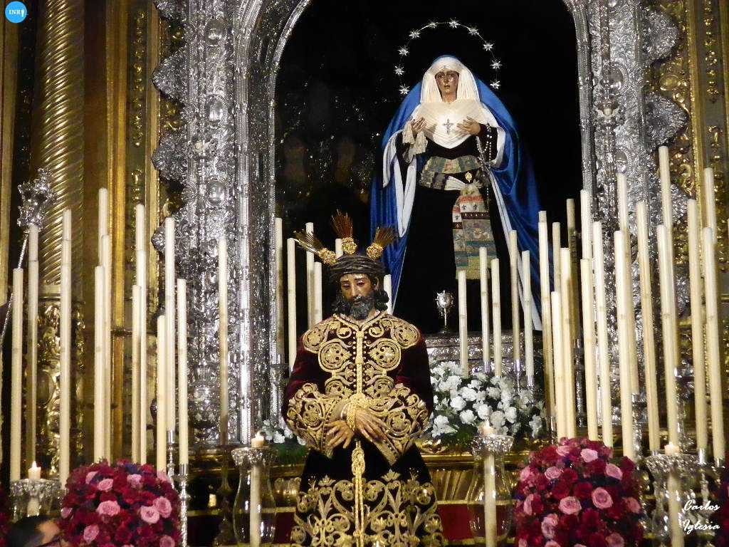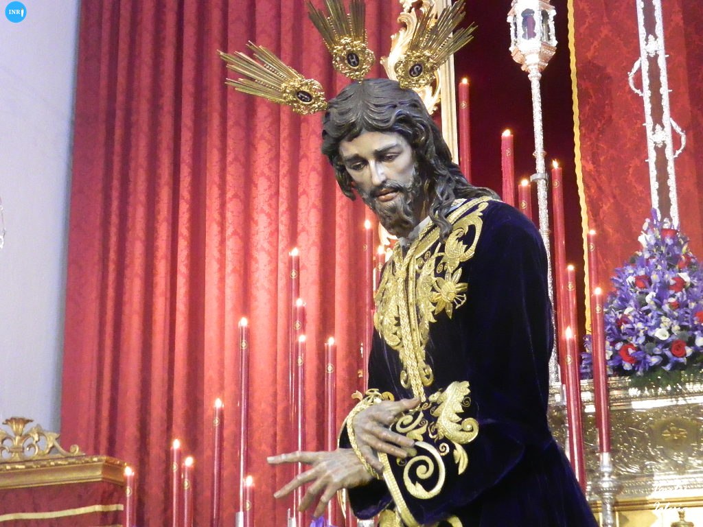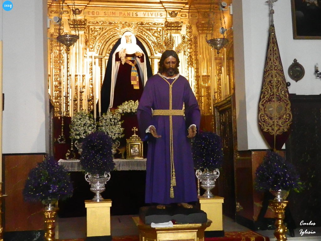 Cuaresma en el Barrio León con el el Señor del Soberano ante Caifás de la Hermandad de San Gonzalo en besamanos a los pies del altar mayor. Túnica en terciopelo morado bordada para la talla de Luis Ortega Bru a los pies del altar de cultos que lo presidía la cruz de guía y con varias tandas de candelería en color rojo.