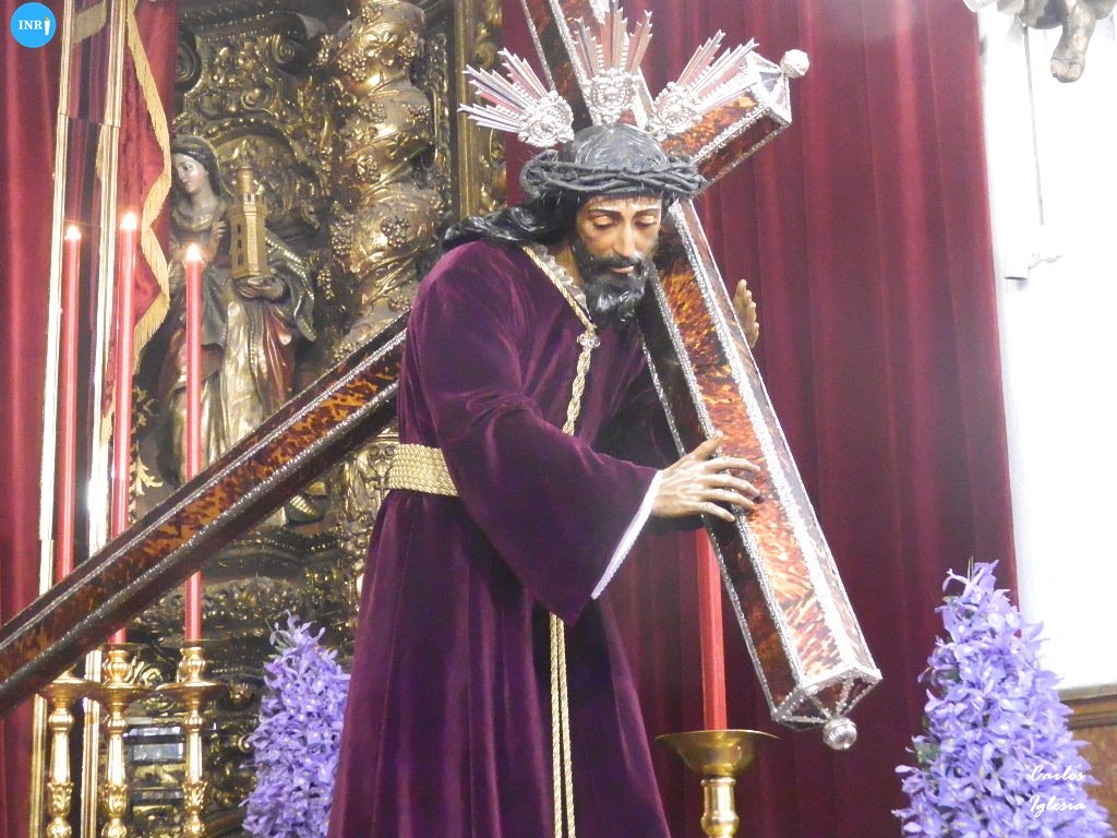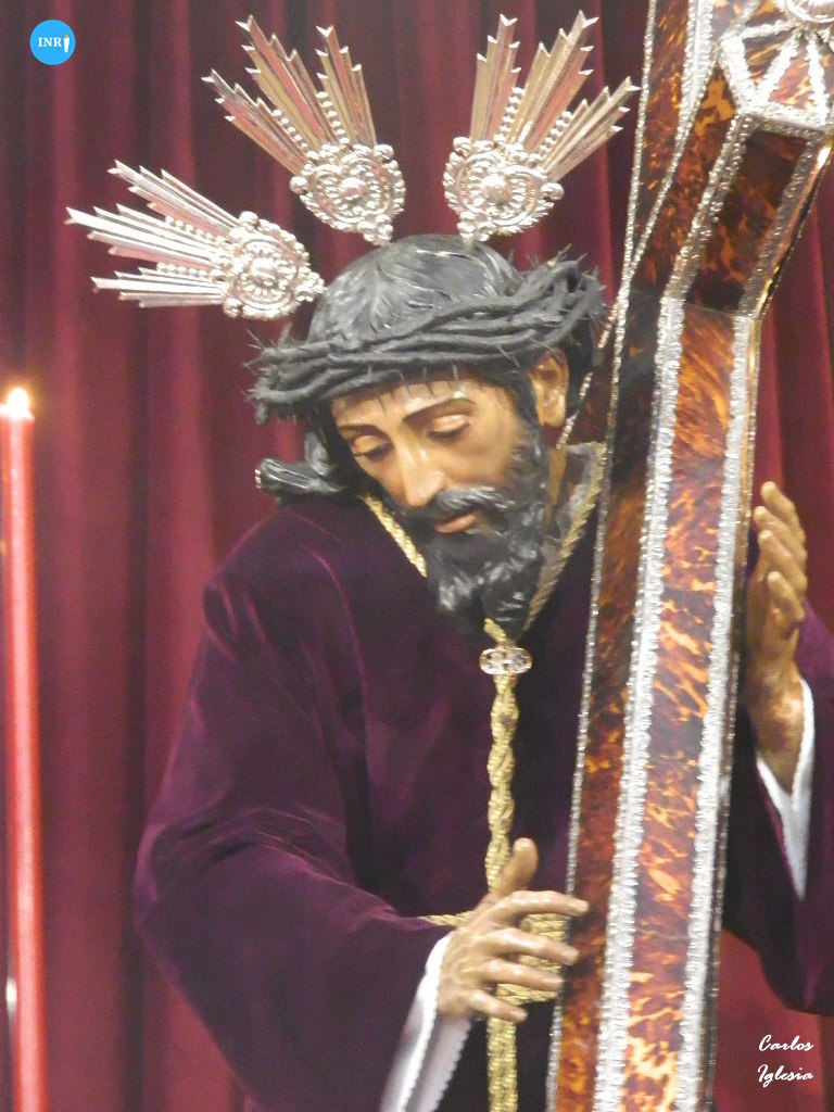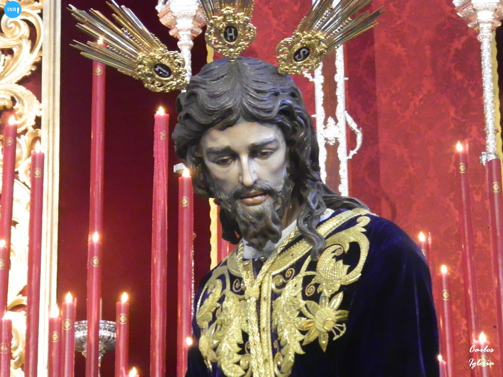 Llegados al barrio de Triana, otra de las imágenes que se encontraban en besapiés pues la imagen de Jesús Nazareno de la Hermandad de la O. Con túnica morada de terciopelo estaba dispuesto esta talla flanqueado por varios candeleros de cera roja, con un fondo de tela de damasco rojo, con dosel.