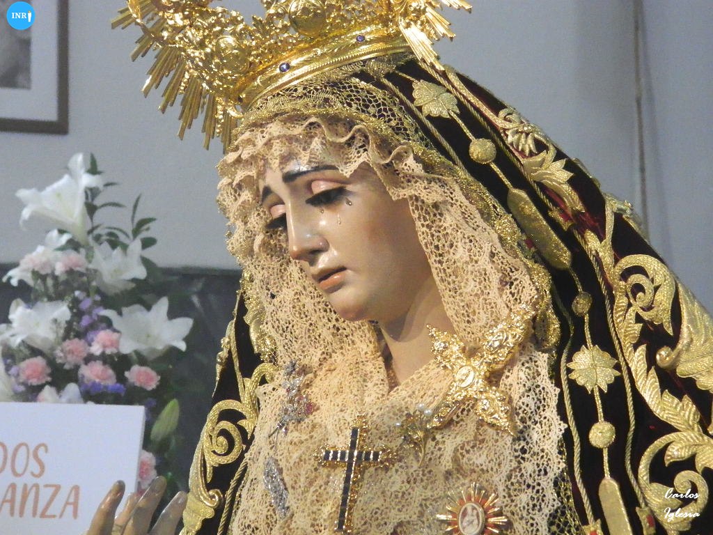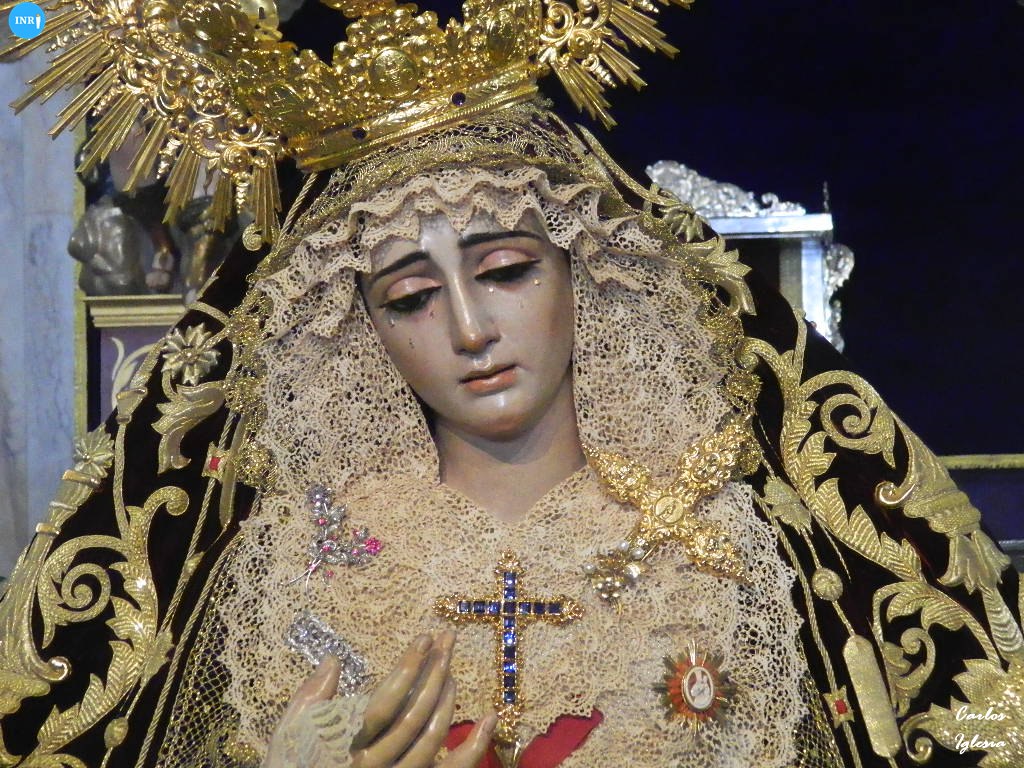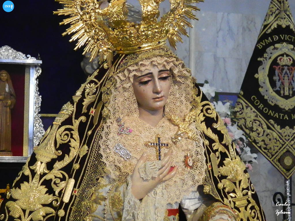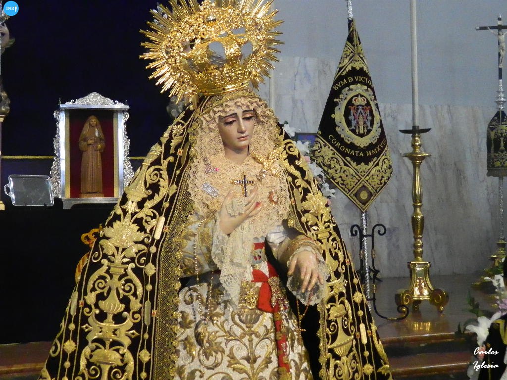 La Virgen de la Victoria de la Hermandad de las Cigarreras estuvo expuesta en su besamanos de esta Cuaresma. Por las obras de su templo lo hizo en la capilla del colegio de Santa Ana.