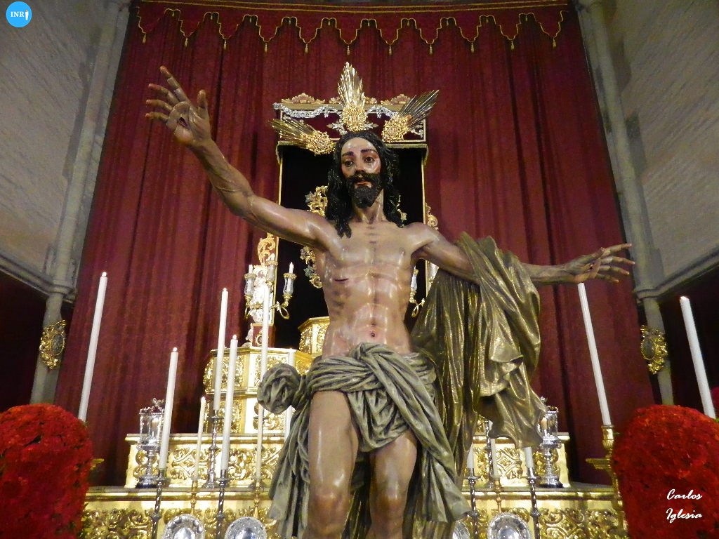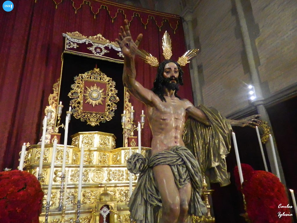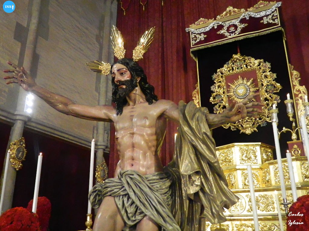 Adentrándose en el barrio de la Macarena, la imagen del Señor de la Sagrada Resurrección se encontraba dispuesto en besapiés en su prebisterio. Su altar estuvo sobre dosel y con varias tandas de candelería de cera blanca.