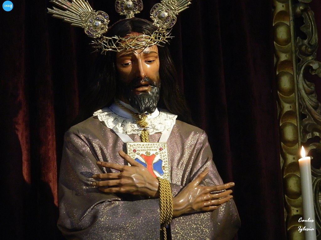 El Señor Cautivo y Rescatado de la Hermandad de San Pablo pudo celebrar su besamanos en su templo, a pesar de que días antes tuvo que ser cerrado a causa de unas filtraciones en el techo por las lluvias de esos días.