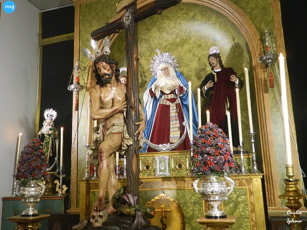 La Virgen de los Dolores de la Hermandad de los Servitas estuvo en besamanos en la jornada de este domingo, haciéndolo en en su propia capilla. La dolorosa se encontraba dispuesta con el Cristo de la Providencia en su regazo. El altar lo completaba junto a la antigua cruz arbórea.
