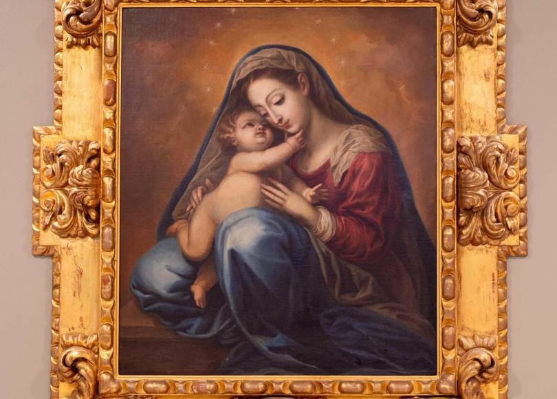 También está el ‘Descanso en la Huida a Egipto’: un cobre restaurado por Carmen Bahima, de gran formato. De la escuela andaluza del siglo XVII, ‘La Virgen y el Niño Jesús’, donado por Rafael y Ana, restaurado por Cales Salafranca.