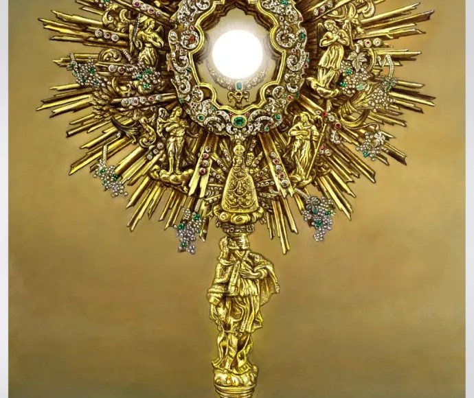 La obra de Sánchez Aguilera presenta un único protagonista: el ostensorio de San Juan Nepomuceno de la Catedral de Sevilla, que fuera adquirido por el cardenal Francisco de Solís y Folch de Cardona en 1775. Ingresó en el tesoro catedralicio en 1780. También es conocido como el ostensorio de las espigas, por las que aparecen repujadas en el adorno de la pieza, que cumple 250 años de su realización.
